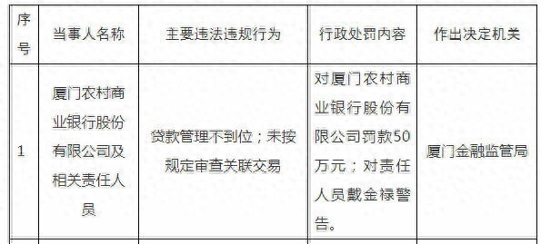 近年,厦门农商行频收大额罚单。