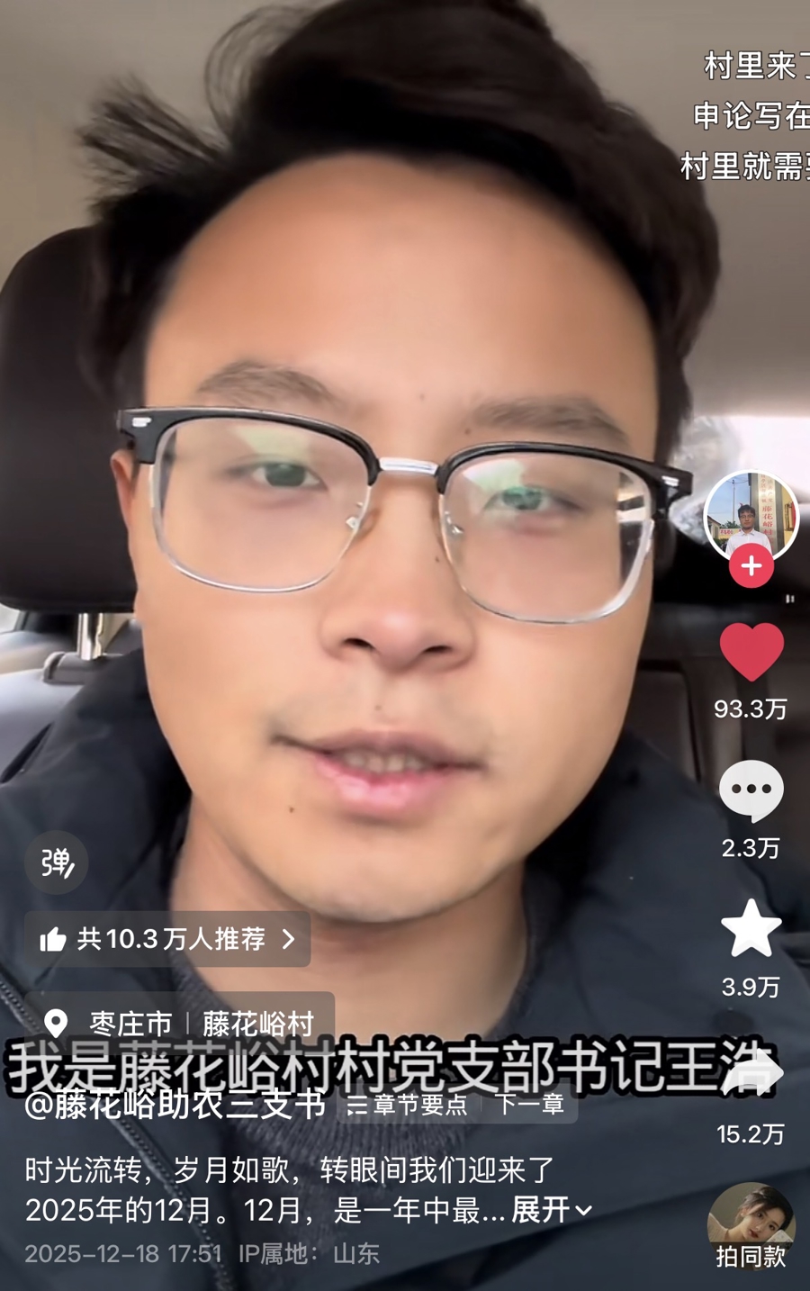 在鲁南山区的褶皱深处,2025年12月18日傍晚,一条1分41秒的年终总结视频,从一个名叫藤花峪的村庄传向网络。