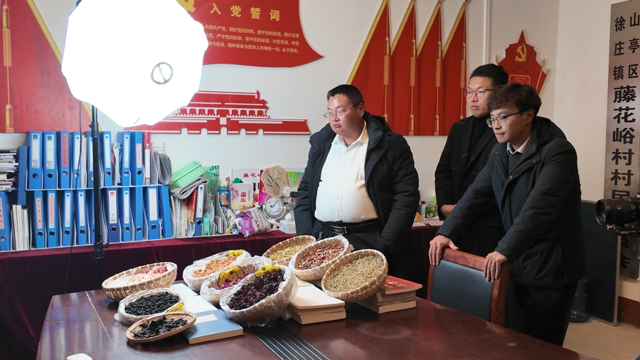 暮色漫过山谷时,村委会办公室的打光灯准时亮起。新年的第一天,王浩没有休息。他出现在自己账号的助农直播间,面前摆着九种花茶,身后挂着“藤花峪村支部委员会”的牌子。