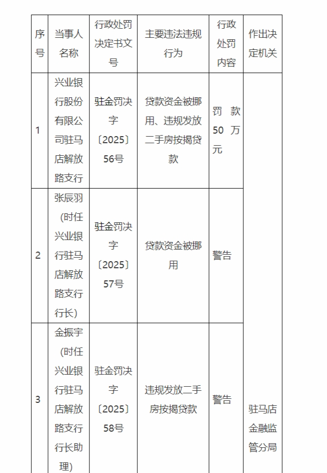 天弘优配 贷款资金被挪用、违规发放二手房按揭贷款,兴业银行驻马店解放路支行被罚款50万元 资金 来源:明福今投配资官网 网站:大牛证券配资官网 日期:2026-02-17 08:43:54 查看:179