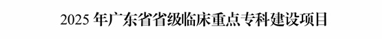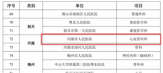 近日,广东省卫生健康委员会公布了2025年广东省省级临床重点专科建设项目名单,心血管内科凭借日益增强的心血管疾病诊治能力、持续改进的医疗服务质量与积极的创新发展,成功入选!这标志着我院心血管疾病诊疗能力、心血管学科建设水平和医院整体的区域医疗质量迈入了省级先进行列,是医院发展历程中的一座重要里程碑,更是为河源及周边地区百姓的健康提供更坚实保障的新起点。